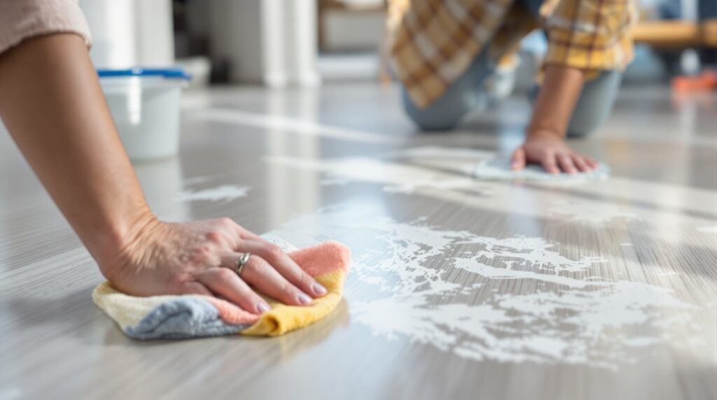Грунтовка на полу может появиться во время ремонта даже у самых аккуратных мастеров. Не стоит расстраиваться, если капли или пятна попали на напольное покрытие. Существует множество способов справиться с этой проблемой, и выбор метода зависит от типа грунтовки и материала пола. Важно действовать как можно быстрее. Свежие пятна удаляются гораздо легче, чем засохшие. Если грунтовка ещё влажная, можно попробовать убрать её обычной влажной тряпкой. Такие составы обычно легче поддаются удалению. Для свежих пятен часто достаточно тёплой воды и мягкой тряпки. Если грунтовка уже подсохла, можно использовать следующие методы: Для усиления эффекта в воду можно добавить немного жидкого мыла или средства для мытья посуды. Акриловые составы требуют более серьёзного подхода. Обычно помогают растворители или специальные смывки: При работе с растворителями важно обеспечить хорошую вентиляцию помещения и использовать перчатки. Такие составы считаются наиболее стойкими. Для их удаления может потребовать