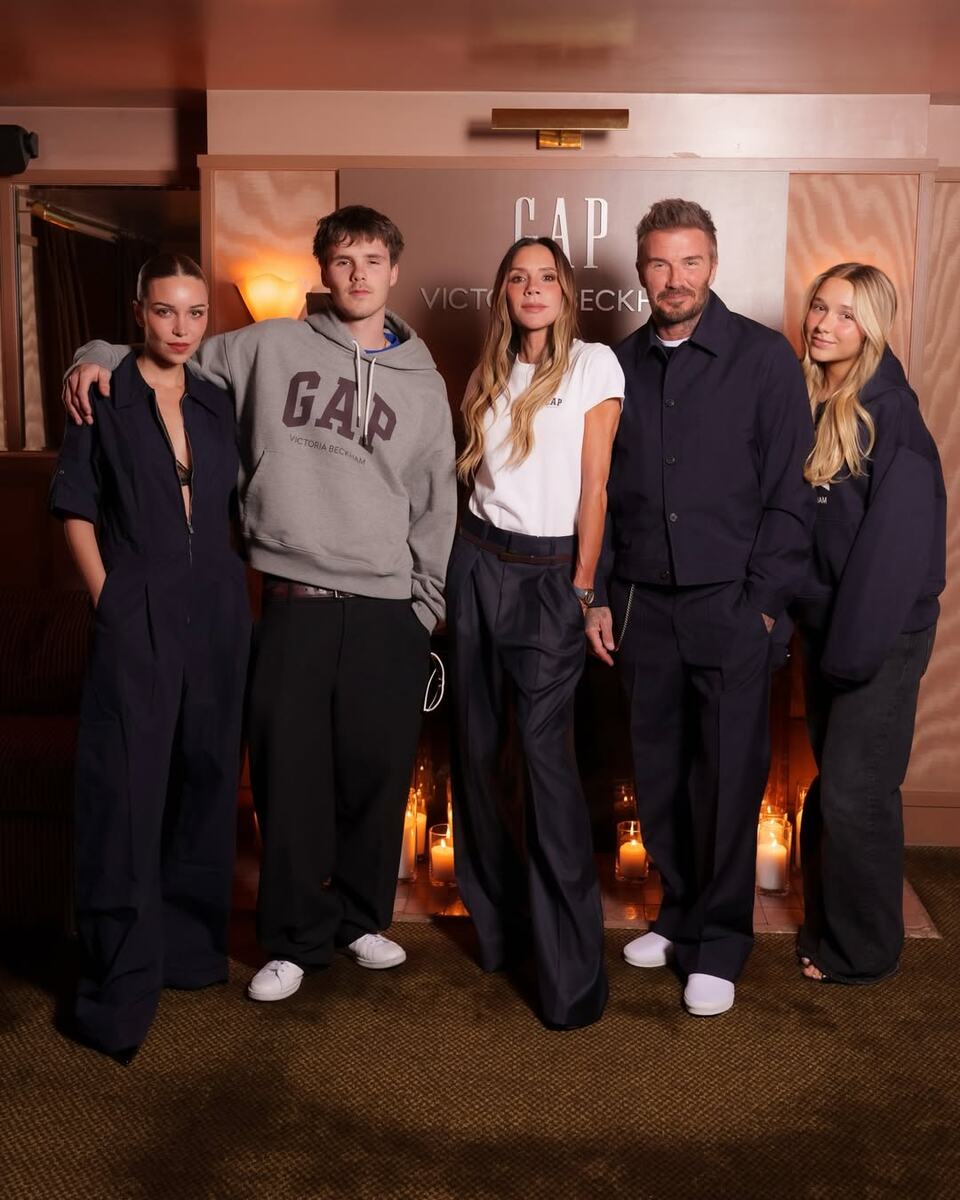 В четверг вечером, 23 апреля, ресторан People’s в Вест-Виллидже на несколько часов превратился в штаб-квартиру самой обсуждаемой коллаборации весны: Виктория Бекхэм отпраздновала запуск совместной коллекции с Gap. Виктория появилась в объёмном тёмно-сером блейзере поверх белой футболки, широких брюках, тонком коричневом кожаном ремне. Коричневые остроносые туфли и крупные квадратные чёрные очки завершили образ в нейтральной, но безупречно откалиброванной палитре. Этот выход стоит читать как личное заявление дизайнера: никакого платья, никакого вечернего гламура, чистая архитектура силуэта. То, что она неустанно продвигает в своих коллекциях последние пятнадцать лет. Дэвид пришёл в тёмно-синем пиджаке с брюками и белых слипонах, Ромео и Харпер выбрали денимные вещи из самой коллекции. Круз приехал с подругой Джеки Апостель, среди гостей были также актрисы Али Лартер и Мишель Рэндольф. Праздновали все. Коллекция из 38 вещей, стартующая от $34 до $328, охватывает деним, куртки, трикотаж,
