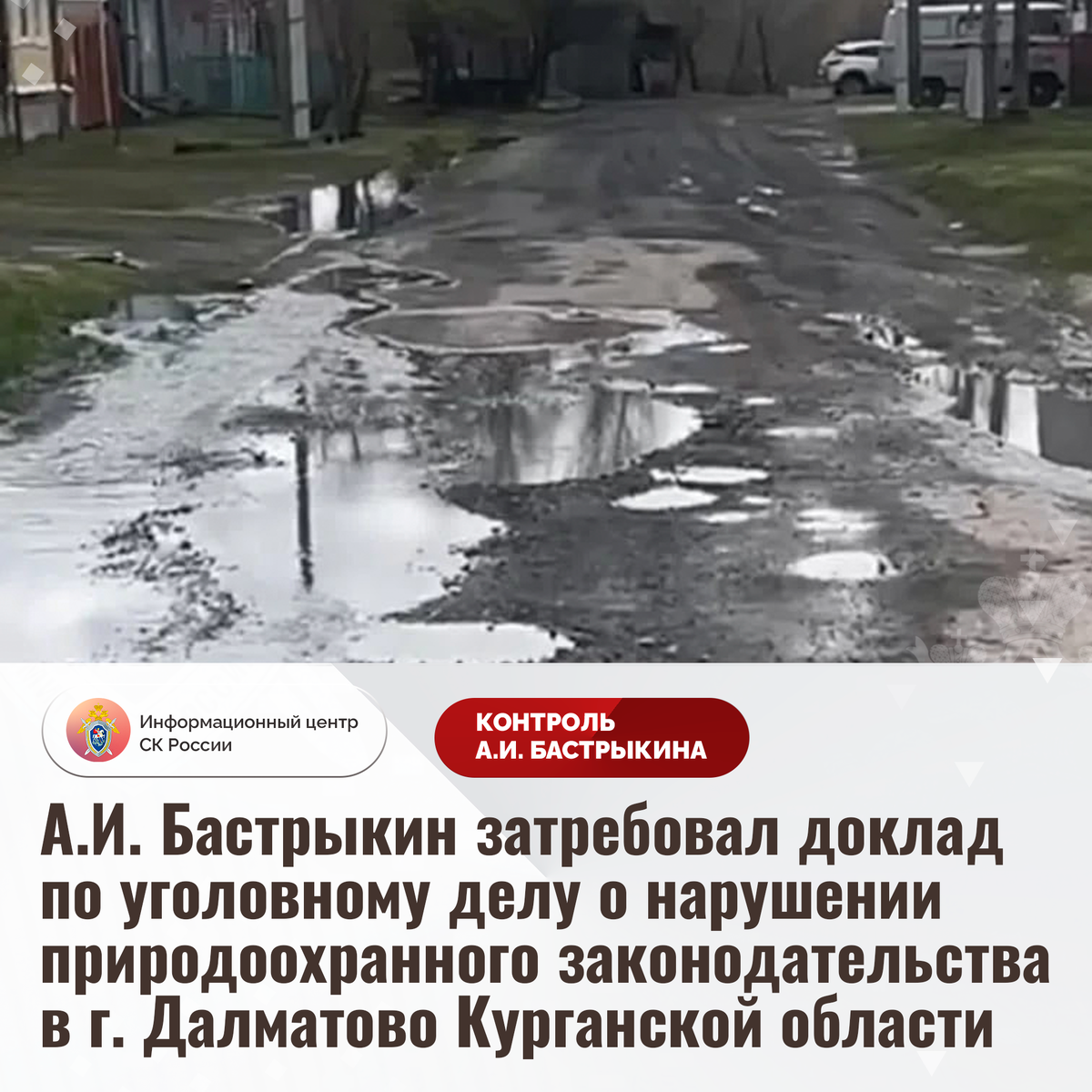 А.И. Бастрыкин затребовал доклад по уголовному делу о нарушении природоохранного законодательства в г. Далматово Курганской области
