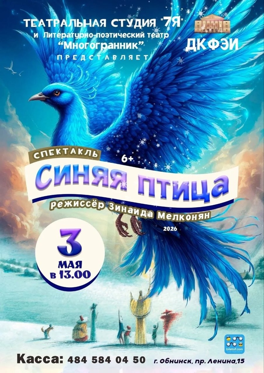 «Синяя птица» (по мотивам сказки‑притчи Мориса Метерлинка). Руководитель и режиссёр: Зинаида Мелконян. В рождественский вечер, когда чудеса так и витают в воздухе, в скромный дом является загадочная Фея. Она даёт брату и сестре всего одну ночь, чтобы найти удивительную Синюю птицу — символ самого настоящего счастья. Их ждёт не просто путешествие, а настоящее волшебное приключение. Повернув волшебный алмаз, дети увидят, как весь мир преображается: их верные друзья, Пёс и Кошка, заговорят человеческими голосами, а души самых обычных вещей — Хлеба, Сахара, Огня, Воды — станут их верными спутниками. Но чем дальше заходят путники, тем яснее становится главный секрет: возможно, Синяя птица ускользает не потому, что прячется в далёких краях, а потому, что счастье нужно искать не глазами, а сердцем. Эта мудрая и добрая сказка напоминает нам о самом главном: настоящее счастье всегда рядом. Оно — в тёплых объятиях семьи, в верности друзей, в уюте родного дома и в нашей способности видеть волшеб