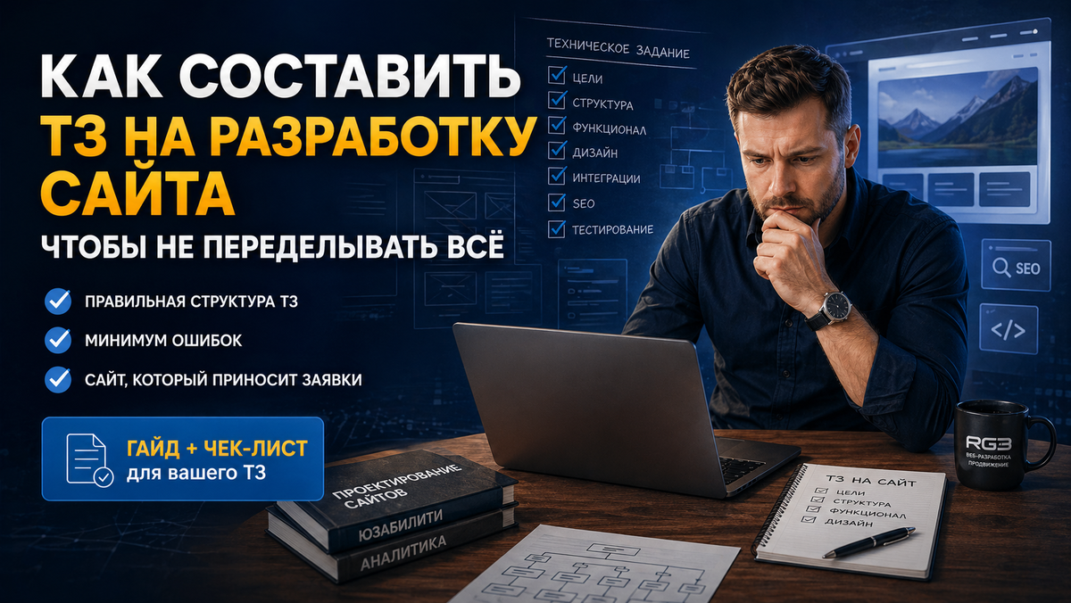 Вы удивитесь, но более 60% сайтов переделываются не из-за плохой разработки, а из-за плохого ТЗ. Сначала делают “как-нибудь”, потом понимают, что сайт не продает - и начинается второй круг расходов. И здесь главный риск - вы платите дважды. Сначала за разработку сайта под ключ, потом за переделку. Разберем, как составить ТЗ на разработку сайта так, чтобы не попасть в эту ловушку. Если коротко, нормальное ТЗ на разработку сайта должно включать: Если хотя бы одного блока нет - почти гарантированы переделки. Не “чтобы был сайт”, а конкретно: Без этого разработчик не понимает, что оптимизировать. Это основа всего: И главное - логика переходов. Именно она влияет на конверсию. Типичные вещи, которые забывают: А потом это “вдруг” становится отдельной платной задачей. Если нет интеграций - вы теряете заявки. Минимум: Это ключевая ошибка. Если не заложить SEO на этапе ТЗ: Вы не знаете, работает ли у него. Фраза “сделать удобный сайт” ничего не значит. Разработчик делает “технически правильно”,