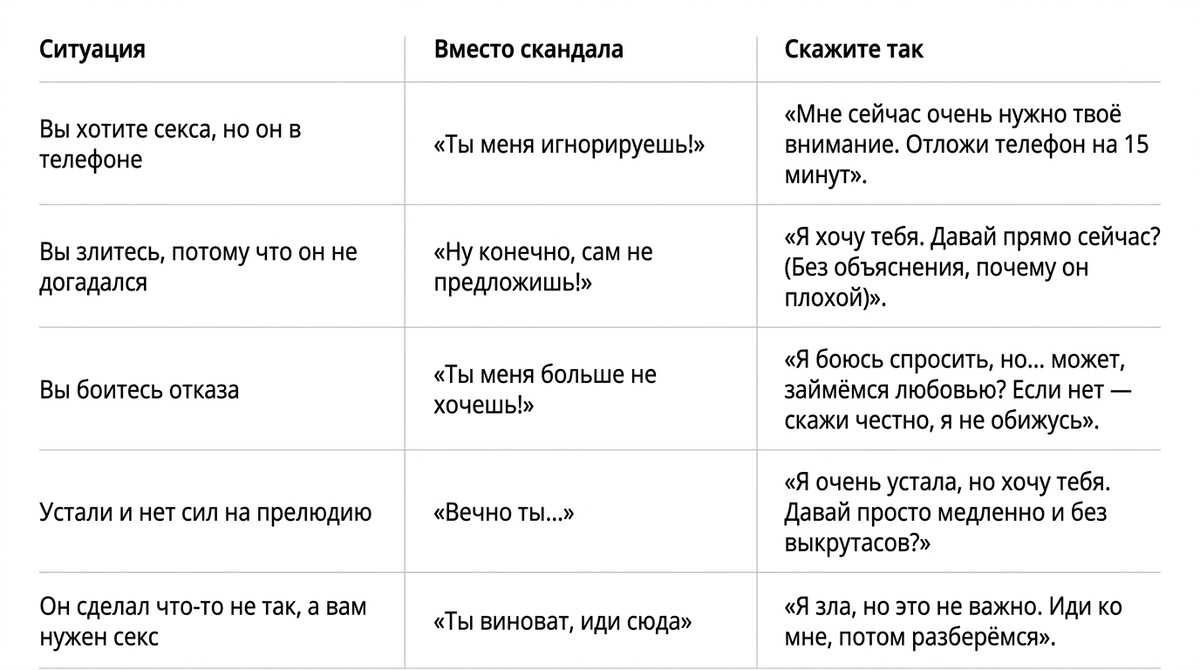 Как сказать “хочу секса” без скандала (рабочие фразы для тех, кто устал орать)