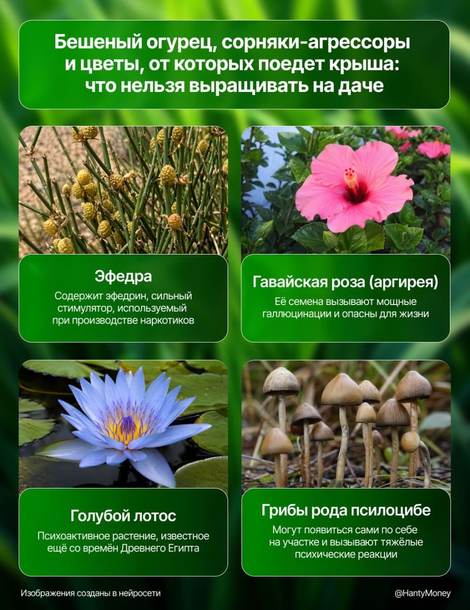 🤩Бешеный огурец, сорняки-агрессоры и грибы, от которых поедет крыша: что нельзя выращивать на даче