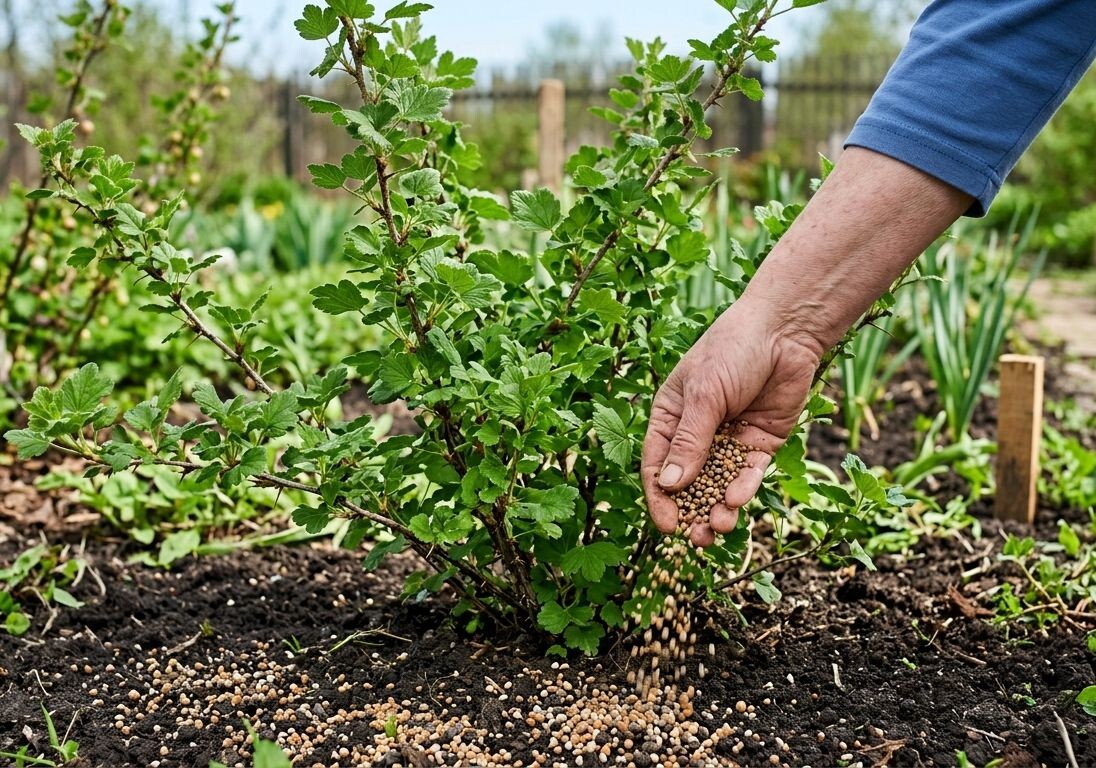 На этапе бутонизации крыжовнику нужен не рост ботвы, а энергия для цветения и формирования завязей. Главные герои этого периода — фосфор и калий. Они работают как волшебная пилюля: