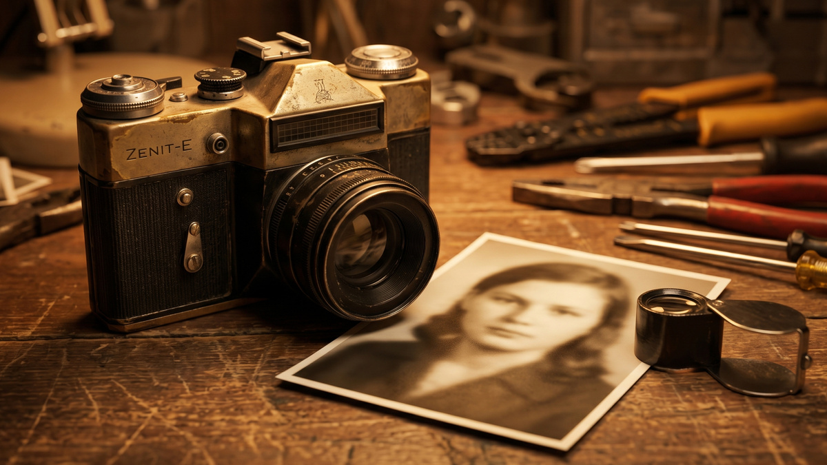 Фотоаппарат он заметил случайно. Лежал на краю раскладного стола, между коробкой с ёлочными игрушками и стопкой журналов «Огонёк». Старый «Зенит», потёртый, с вмятиной на корпусе. Тяжёлый, настоящий. Рядом поблёскивал латунный самовар с выломанным краником, висел на гвоздике китель без пуговиц, стояла пирамидка из фарфоровых слоников – штук семь, один без хобота.