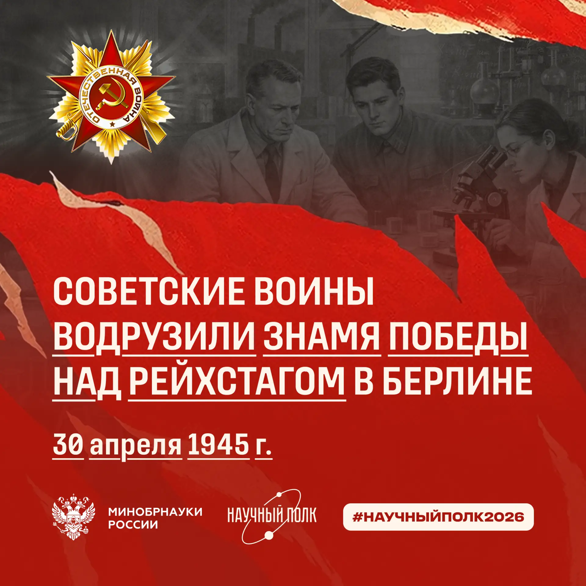 ⭐ Мы продолжаем нашу традиционную рубрику «Герои ГИСИ-ННГАСУ», в которой рассказываем о событиях Великой Отечественной войны. К апрелю 1945 года Советская армия завершила одну из крупнейших стратегических операций — Берлинскую. Рейхстаг стал не просто зданием парламента, а символом нацистского режима, который предстояло сокрушить. Бои за него велись за каждый этаж и каждую комнату — даже после того, как главное знамя было установлено, внутри ещё двое суток отстреливались оставшиеся гитлеровцы. Именно в этот день советские войска в ходе ожесточённого штурма водрузили Знамя Победы над Рейхстагом в Берлине. Первыми официальными знаменосцами стали разведчики 150-й стрелковой дивизии М.А. Егоров и М.В. Кантария под руководством лейтенанта А.П. Береста. Однако задокументировано, что несколько красных флагов было установлено разными штурмовыми группами раньше, начиная с 29 апреля. Историческим Знаменем Победы (оно хранится в Центральном музее Вооружённых Сил) признано знамя №5, которое водруз