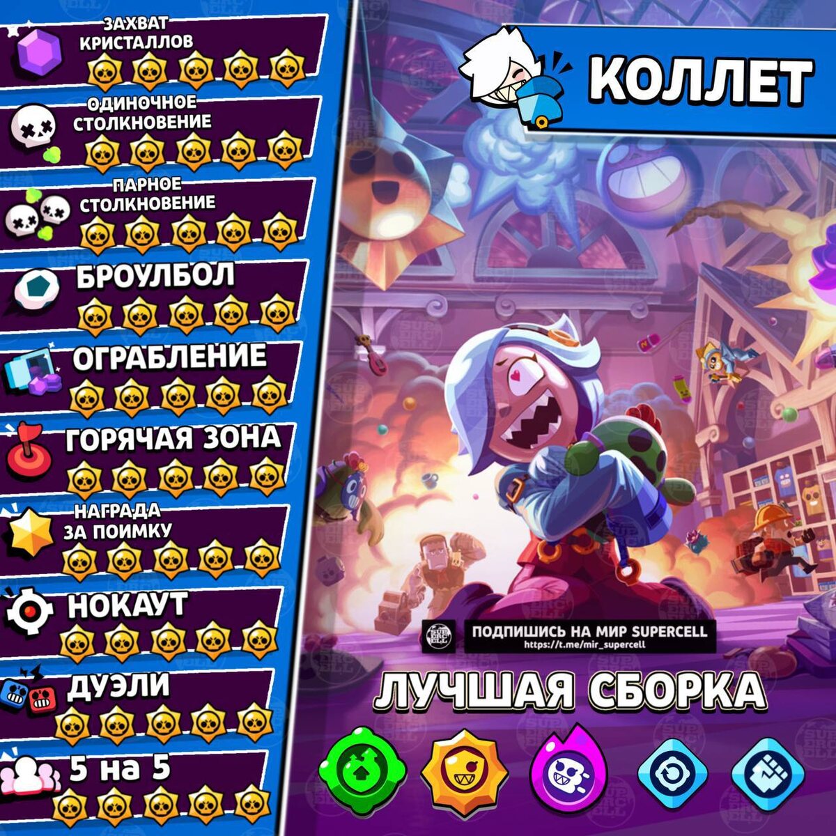 Колетт из-за бага с бесконечным щитом сейчас является самым сильным бравлером в игре. Правда, уже во вторник пройдет технический перерыв, в котором данный баг исправят. ✅Новости по Clash Royale - ТЫК Мир Supercell. Подписаться