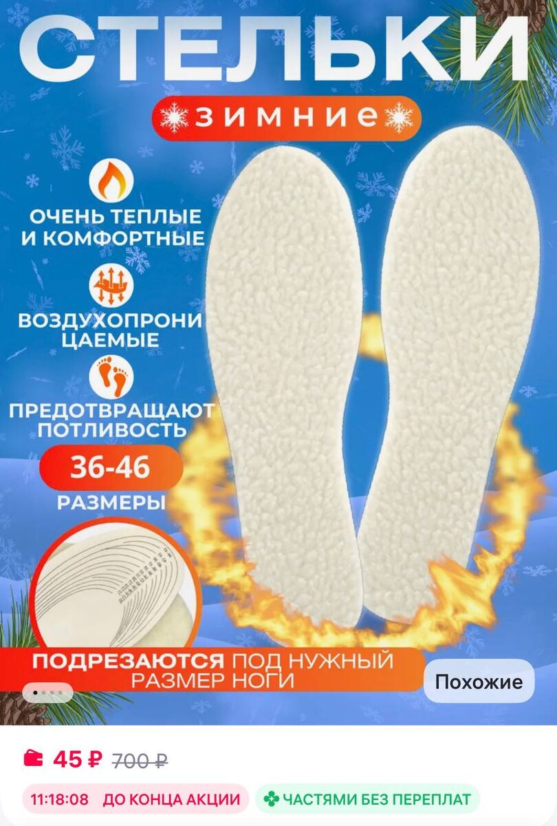 Стельки для обуви зимние теплые
