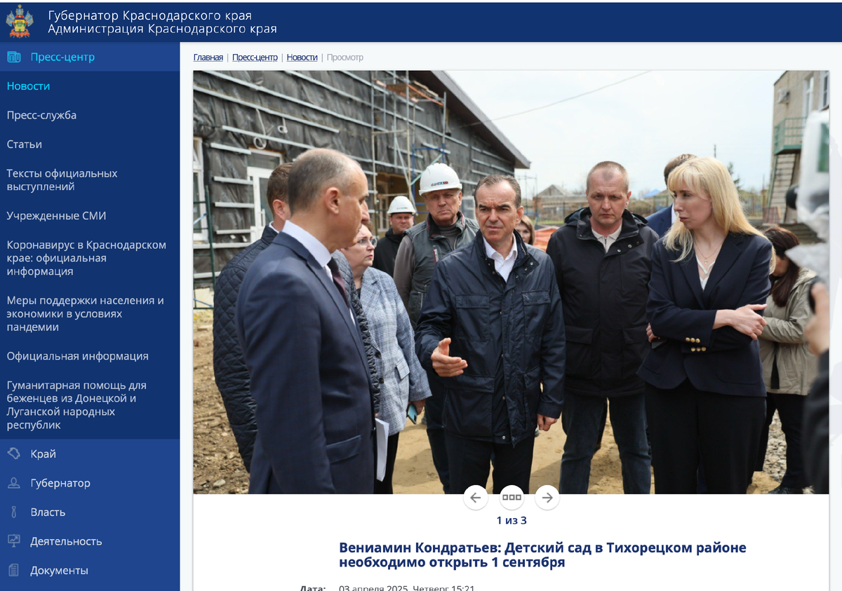 «Время у нас вообще нет. И в этом году 1 сентября мы его не стройкой сдаем, а открываем как по-настоящему детский сад», - год назад обещал жителям станицы Фастовецкой губернатор Краснодарского края Вениамин Кондратьев. СМИ тогда наперебой цитировали Вениамина Ивановича: «Жители Фастовецкой уже несколько лет ждут открытия детского сада, за это время у многих из них уже выросли дети. Мы должны решить этот вопрос, ускорить и запараллелить работы по отделке фасадов, благоустройству территории, чтобы открыть учреждение уже 1 сентября». Ни 1 сентября, ни 1 декабря, ни сейчас пристройка на 60 мест к детскому саду № 44 в станице Фастовецкой не открыта. Как провалена сдача еще десятков социальных объектов по всему Краснодарскому краю, о которых пафосно рапортовал Вениамин Кондратьев. Некоторые из них не могут сдать с 2023-2024 годов. В далеко неполном перечне: Казачий кадетский корпус в Динской, школы № 5 и 6 Павловского района, детсад в станице Кубанской, школа № 3 Крыловской, школа на ул. За