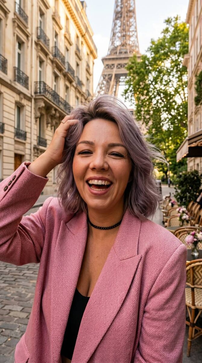 👇🏻 🌟Переходим на удобный сервис для генерации: Ссылка 👉 Syntx Ai Ссылка 👉 Veo3 📌ИНСТРУКЦИЯ ПО ИСПОЛЬЗОВАНИЮ В ЗАКРЕПЛЕННЫХ СООБЩЕНИЯХ 👍👍👍👍👍👍 ⚠️ПОДПИШИСЬ НА РЕЗЕРВНЫЕ КАНАЛЫ 👇 📱 канал в ВК 📱 канал в МАХ ◾️ПРОМПТ : Кинематографический портрет смеющейся женщины крупным планом, элегантно проводящей рукой по развевающимся на ветру волосам. Не меняй черты лица. Волосы цветом как на фото, короткие, но густые, с объемом у Корней. Сцена освещена светом "золотого часа", создающим мягкое свечение и нежный блик на объективе. На ней надет объемный розовый блейзер с узором и черное колье на шее. Фотография отличается высокой контрастностью, теплыми оттенками загорелой кожи и четкими деталями как на модели, так и на заднем плане. Декорация — четко очерченная парижская улица, вдохновленная приведенным образцом, с культовой архитектурой, видом на Эйфелеву башню, террасами бутик-кафе и пышными городскими деревьями. Все элементы фона яркие и находятся в идеальном фокусе, перед