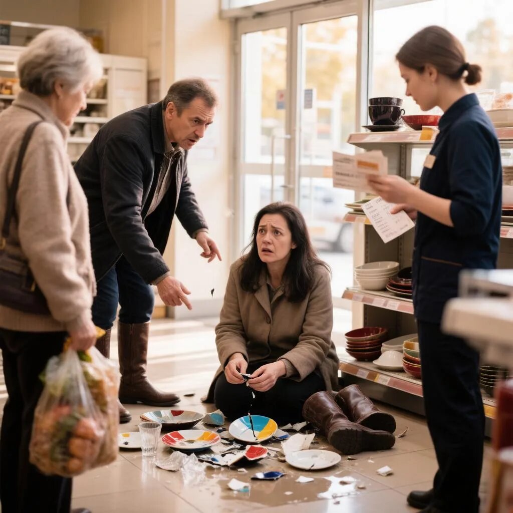 Там стояла женщина средних лет. Ее глаза были широко раскрыты, лицо застыло в ужасе. Она осторожно опустилась на колени рядом со стеклянными осколками, лежащими у нее под ногами. Руки дрожали, когда она пыталась собрать мелкие кусочки, будто надеялась вернуть целым то, что уже было безвозвратно разрушено.