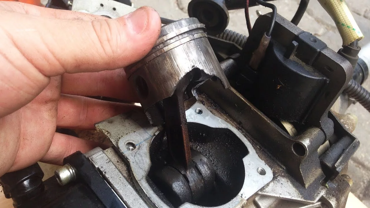 — Двухтактный двигатель без масла живёт 5–10 минут. Поршень расширяется, задирает цилиндр. В лучшем случае падает компрессия, в худшем — поршень заклинивает, и стартер не провернуть. У вас второй вариант.