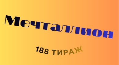 26 апреля 2026 года на Первом российском канале состоялся очередной розыгрыш лотереи "Мечталлион", которой на этот раз был за номером 188 и который отличался тем, что он продолжался до 39-го хода, то есть в нашем лототроне остался сегодня только один шар. Все выпавшие в 188 тираже лотереи "Мечталлион" номера шаров: 38, 13, 4, 19, 31, 8, 28, 33, 24, 21, 37, 25, 9, 1, 30, 7, 10, 18, 3, 26, 40, 27, 34, 23, 36, 17, 15, 12, 11, 32, 16, 6, 35, 39, 22, 5, 14, 2, 29. 6 участников сегодня стали обладателями приза в 1 000 000 ₽. Призы в 100 000 000 ₽ и 2 000 000 ₽ сегодня снова не достались никому. Невыпавший один шар: 20. Количество выигрышных билетов: 352 225 Сумма всех выигрышных билетов: 44 500 200 ₽