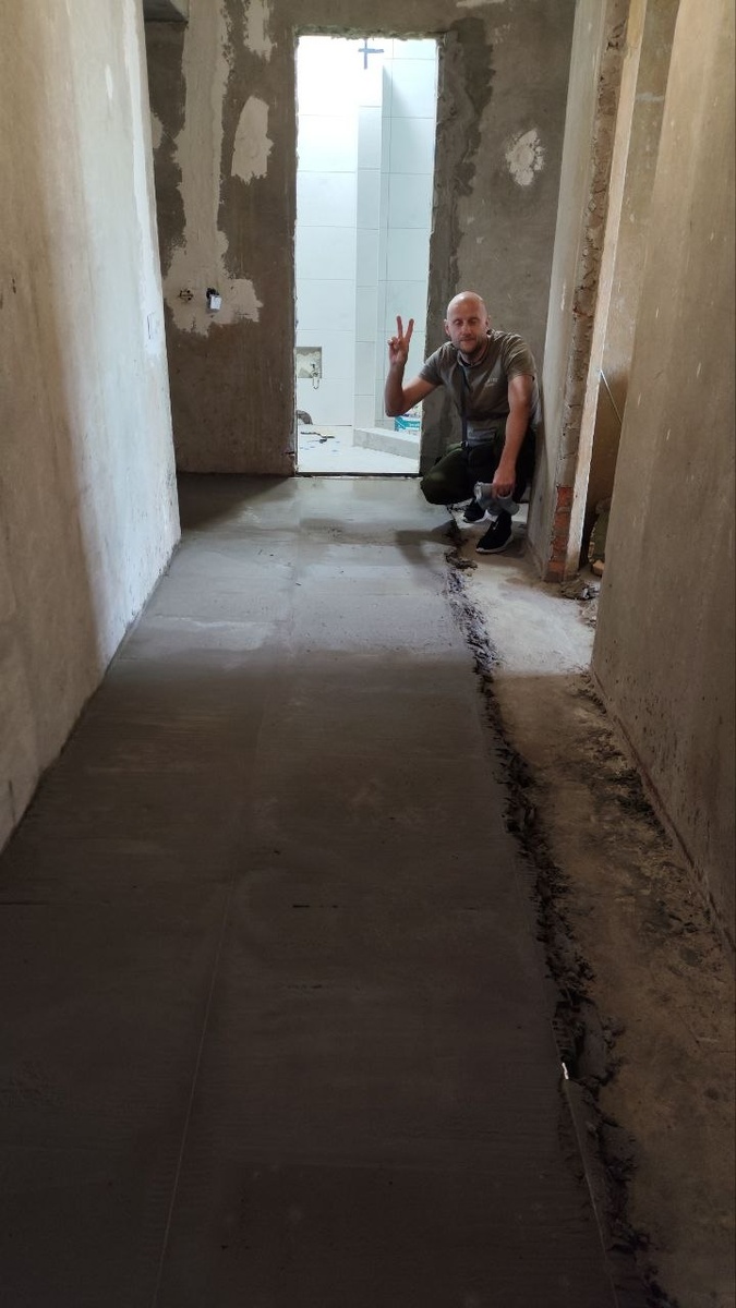 Ну вот и всё! Завтра заканчивают заливать стяжку. И у нас будет передышка. Плитка куплена, но надо теперь просохнуть полу.