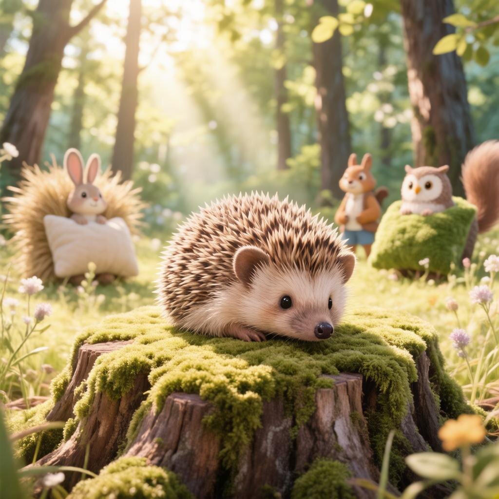 В одном густом лесу, где деревья шептались на ветру, жил маленький Ёжик по имени Шуршик. Он очень любил ложиться спать, но вот беда — никак не мог найти подушку, чтобы было мягко и уютно.