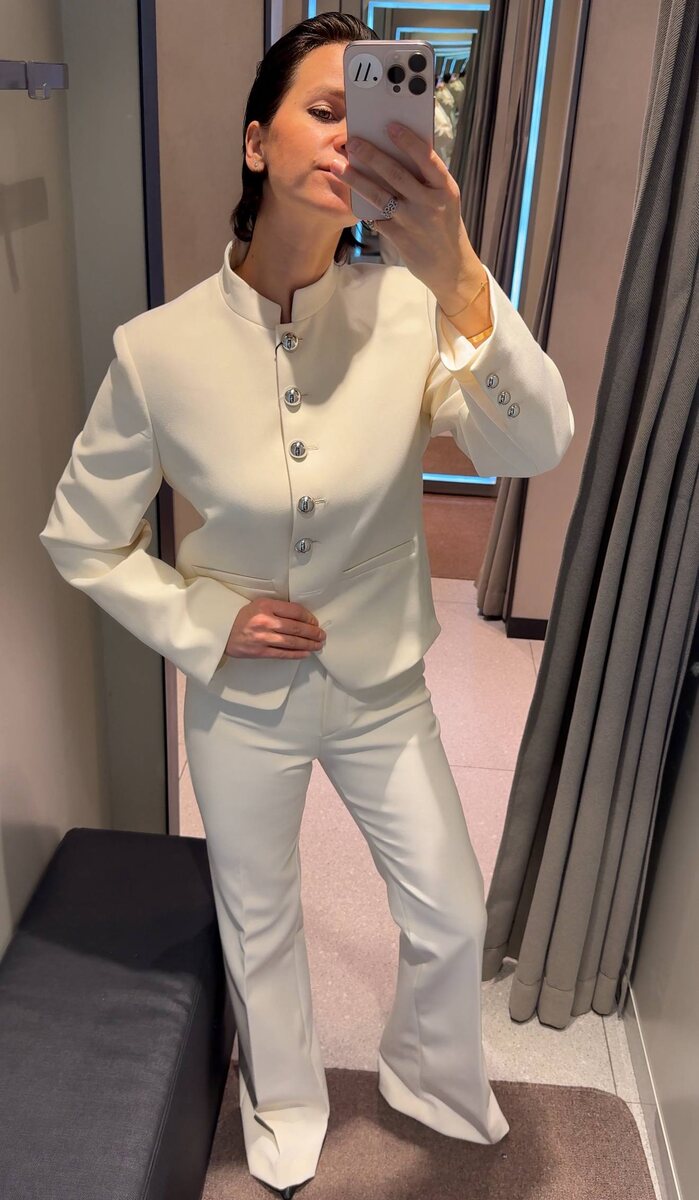 ». Вы приятно удивитесь, но внедрив в свой гардероб только одни белые джинсы, можно получить множество комбинаций, которые отлично разнообразят привычный гардероб. 📍Белоснежный костюм найден в Mango.