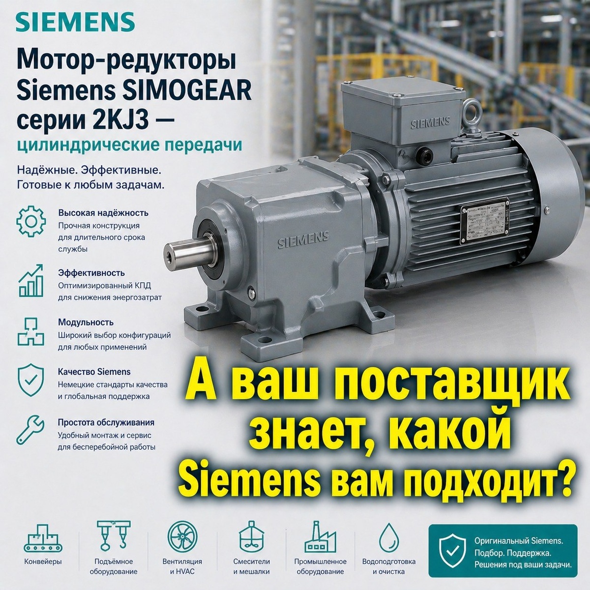 "Цилиндрические мотор-редукторы Siemens серии SIMOGEAR 2KJ3 — востребованная категория промышленного оборудования
