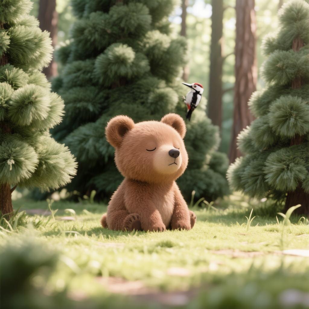 В одном большом лесу, где каждое утро птицы начинали петь, как только всходило солнце, жил маленький Медвежонок по имени Мишутка. Он очень любил слушать лесные звуки, но однажды понял, что ему не хватает тишины — такой, чтобы можно было услышать, как растёт трава и как дышит земля.