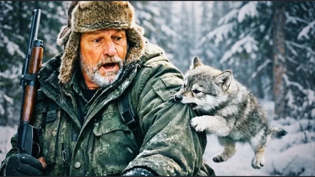 На его плече, вцепившись когтями в стёганку, висел волчонок. Маленький, серый, с голубыми ещё глазами — он дрожал всем телом и жалобно скулил. В его взгляде не было злобы. Только страх и отчаяние. И странная, безумная надежда.