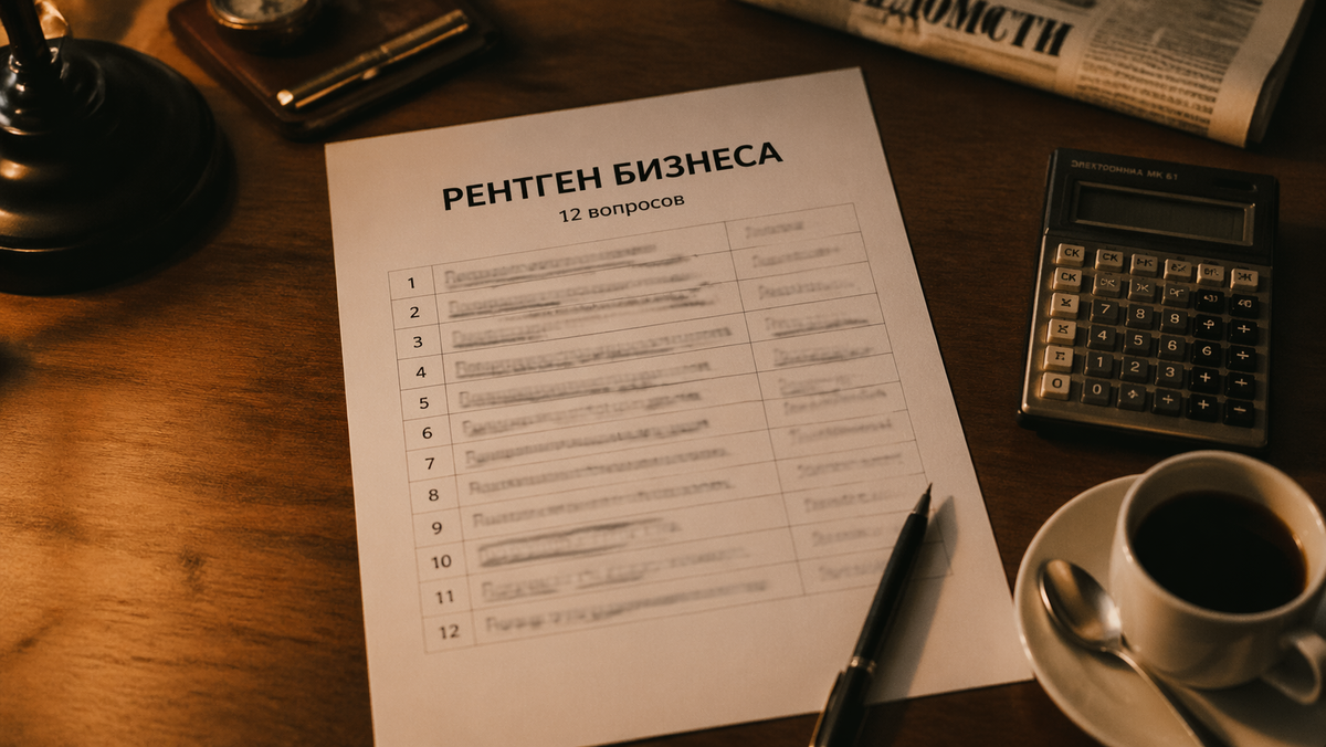 Ты садишься напротив и говоришь: «Я свой бизнес знаю на ощупь». Я беру лист бумаги, задаю первый вопрос. На третьем замолкаешь. На пятом тянешься к телефону: «Сейчас у бухгалтера уточню». На седьмом смотришь в окно. Я вижу это на первой встрече с каждым клиентом. Картина одна и та же. Между «знаю свой бизнес» и «вижу бизнес в цифрах» лежат проценты прибыли. Иногда десяток. Иногда тридцать. Чуйка работает, пока ты один в одной голове. Бизнес перерастает планку в пять миллионов оборота. И чуйка врёт. Этот лист собирался годами, в разных компаниях и городах. Сначала в группе из нескольких магазинов: объехать все за день невозможно, приходилось задавать директорам одни и те же вопросы по телефону и сверять ответы с цифрами. Потом в гипермаркетах, где ФОТ к выручке стал еженедельным показателем. И, наконец, в крупной крымской розничной сети. Двенадцать вопросов. Минимум, на котором виден несущий скелет компании. Оборот за месяц к тому же месяцу прошлого года. Без сравнения текущая цифра про