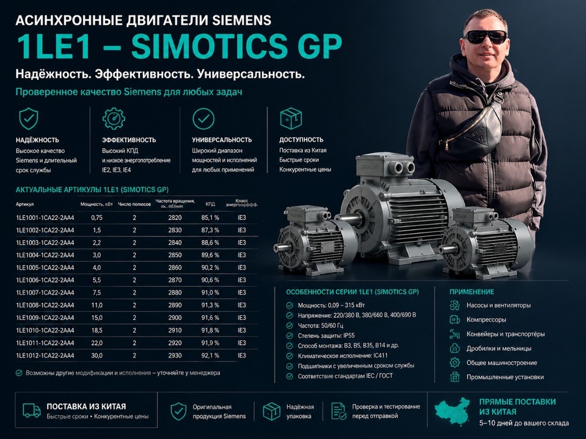 "Асинхронные трёхфазные двигатели Siemens общего назначения серии SIMOTICS GP-1LE1 — востребованная категория промышленного оборудования