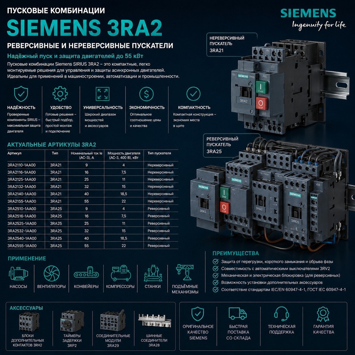 "Готовые пусковые комбинации Siemens серии SIRIUS 3RA2 на базе контакторов 3RT2 — востребованная категория промышленного оборудования