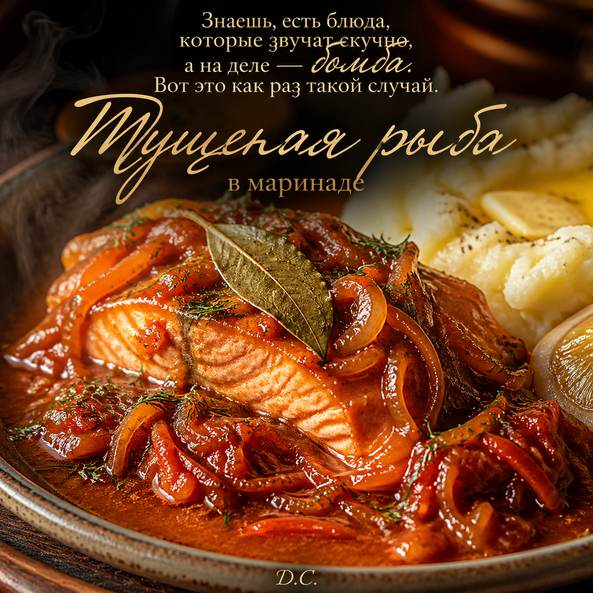 Знаешь, есть блюда, которые звучат скучно, а на деле — бомба. Вот это как раз такой случай. Тушеная рыба в маринаде — это не «ну, рыбка в сковородке», это взрыв вкуса, когда кисло-сладкий, пряный сок пронизывает каждое волокно, а сама рыба тает во рту. И запах по квартире стоит такой, что соседи приходят стучаться.