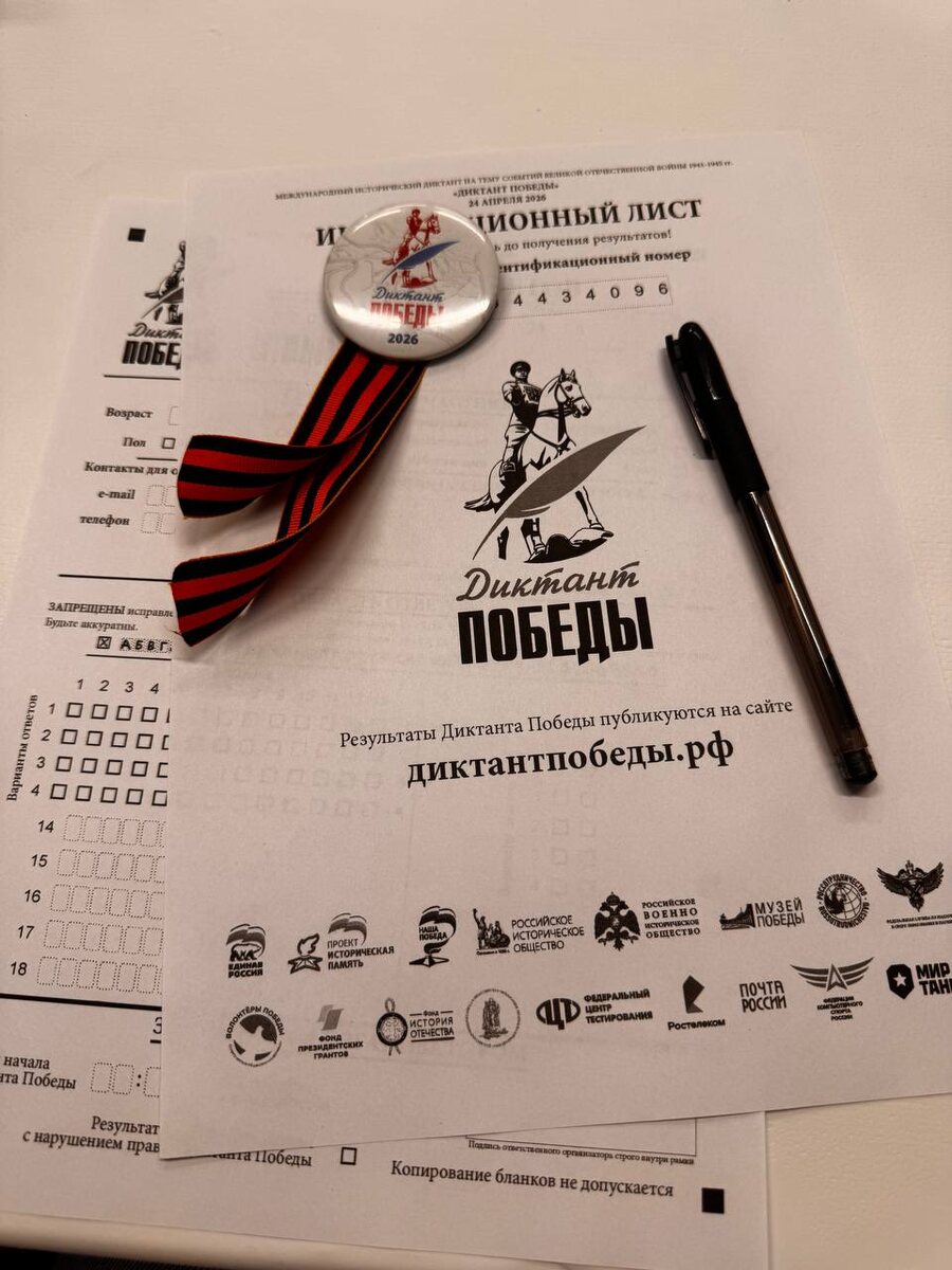 » 🇷🇺✍️. В этом году событие было особенно значимым - к 85-летию начала Великой Отечественной войны и 130-летию со дня рождения маршала Георгия Жукова 🎖️. Это был отличный шанс освежить знания о героях и ключевых битвах войны 🗺️🕊️, почувствовать единство с миллионами участников по всей стране и миру 🤝🌍. Спасибо организаторам за возможность прикоснуться к истории и проверить свои знания! 📚✨ Жду следующего Диктанта Победы. #ЕР24 #ВВЕРХ #СторонникиЕр #ДиктантаПобеды #ЕдинаяРоссияНорильск