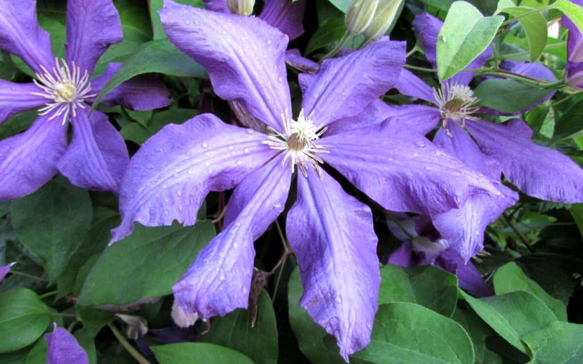 Клематис Лютер Бербанк — это высокорослая лиана, широко используемая в ландшафтном дизайне для украшения беседок, террас, балконов и клумб. Растение может достигать высоты до 4 метров, отличается вьющимися стеблями и сложными листьями, состоящими из 3–5 листочков. На каждом кусте формируется до 10 побегов красновато-коричневого оттенка, на которых распускаются крупные (до 20 см в диаметре) немахровые цветки с 6 волнистыми лепестками пурпурно-фиолетового цвета и светлыми тычинками с жёлтыми пыльниками. Плюсы: - Высокая зимостойкость (выдерживает морозы до –34 °C, зона 4). - Устойчивость к вирусам и многим заболеваниям. - Обильное и продолжительное цветение. - Неприхотливость к типу почвы (растёт как на плодородной, так и на обычной земле). Минусы: - Требует регулярных подкормок и обильного полива. - Нуждается в укрытии на зиму. Особенности цветения Цветение начинается в июне и продолжается до сентября, отличается обильностью и длительностью. Цветки появляются на молодых побегах, поэт