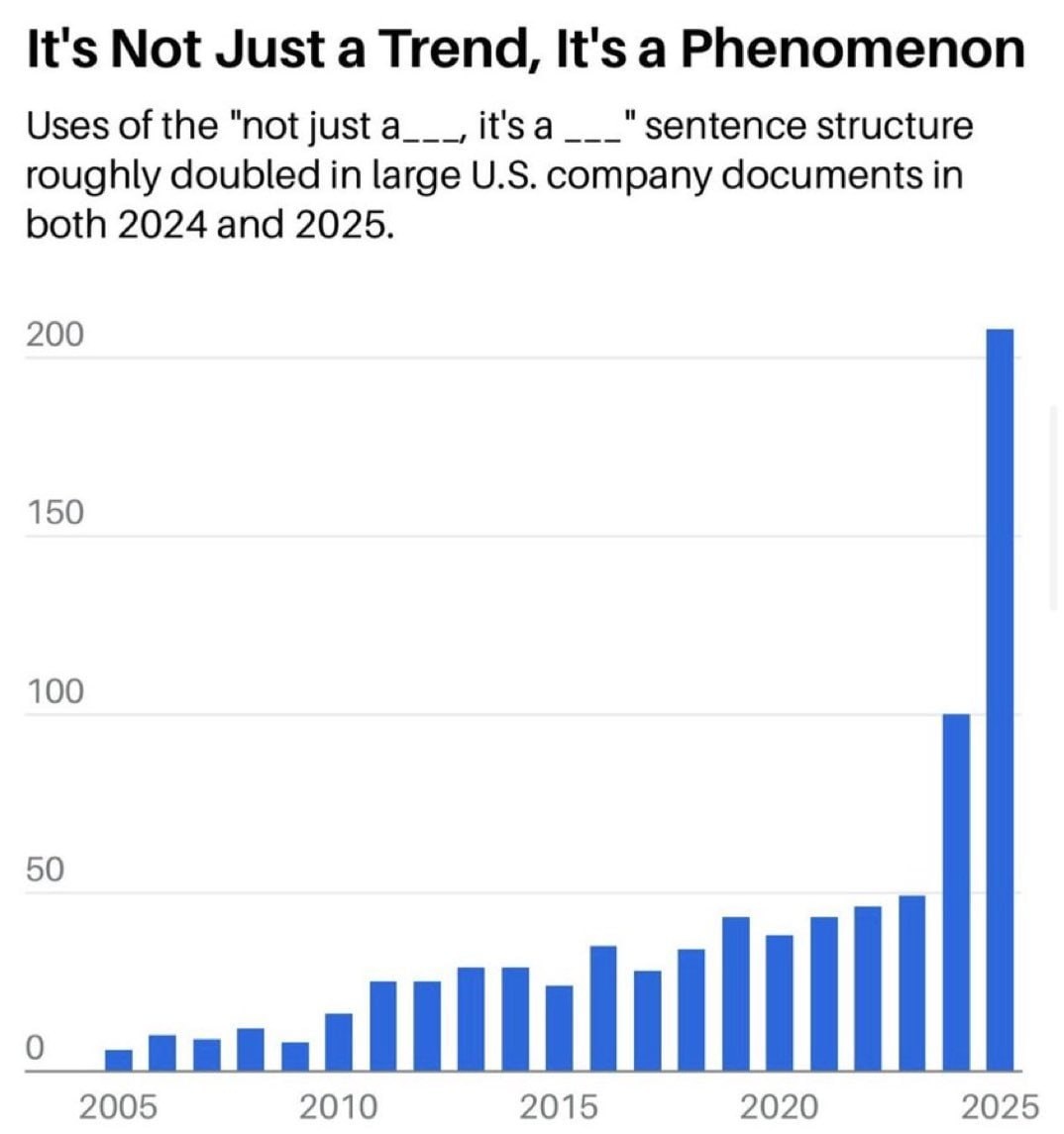 Как часто встречается конструкция «это не просто X, это Y» в пресс-релизах, письмах и других корпоративных текстах в США. Считается, что это признак генерации текста от ИИ, а может просто манипуляция :)