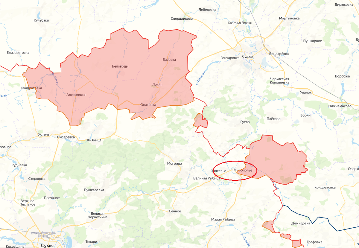 - Сумская область (северное направление). На этом участке сохраняется крайне напряжённая обстановка. Российские штурмовые подразделения продолжают зачистку населённого пункта Мирополье, который, по данным военкоров, противник превратил в единый укрепрайон.