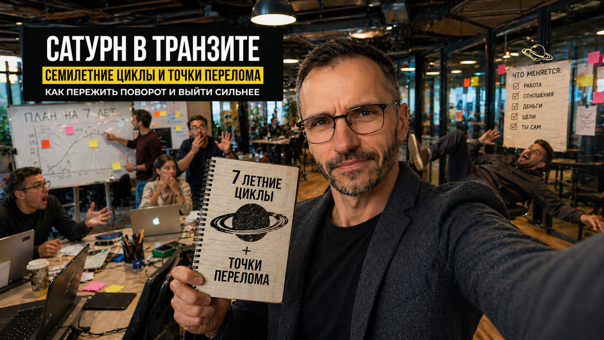 Это не кризис в бытовом смысле. И не усталость от рутины. Это Сатурн делает свои семь лет — проходит 90 градусов по кругу и добирается до очередной узловой точки твоей карты. Раз в семь лет жизнь предъявляет счёт. Не в смысле наказания, а в смысле итога: что построено по-настоящему, а что держалось на честном слове. В статье разберёмся, как эти циклы работают, почему некоторые люди проходят их почти незаметно, а другие выходят с полной перетряской судьбы, и что с этим можно сделать практически.