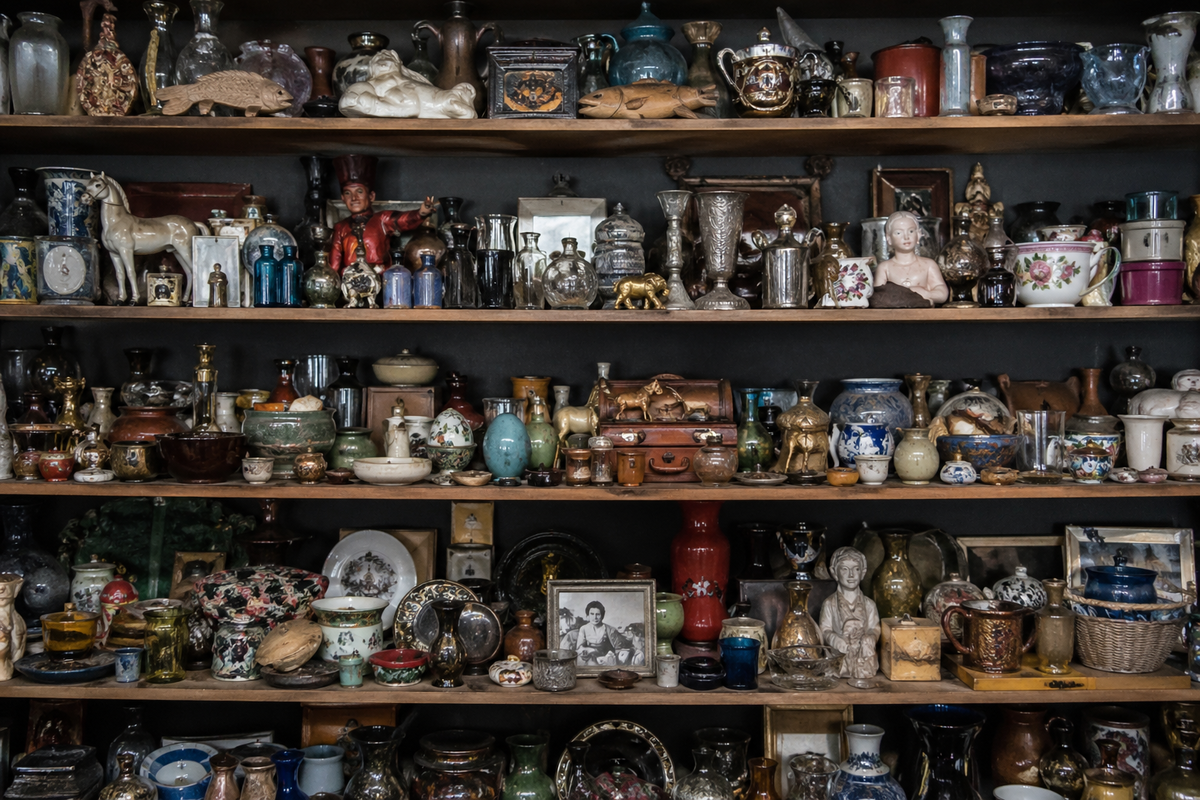 Большое количество небольших предметов разбивает полку на множество визуальных точек, и глаз не может зафиксироваться на чём-то одном, из-за чего возникает ощущение хаоса, даже если всё стоит ровно. 3. Отсутствие единой системы делает даже аккуратные полки визуально тяжёлыми