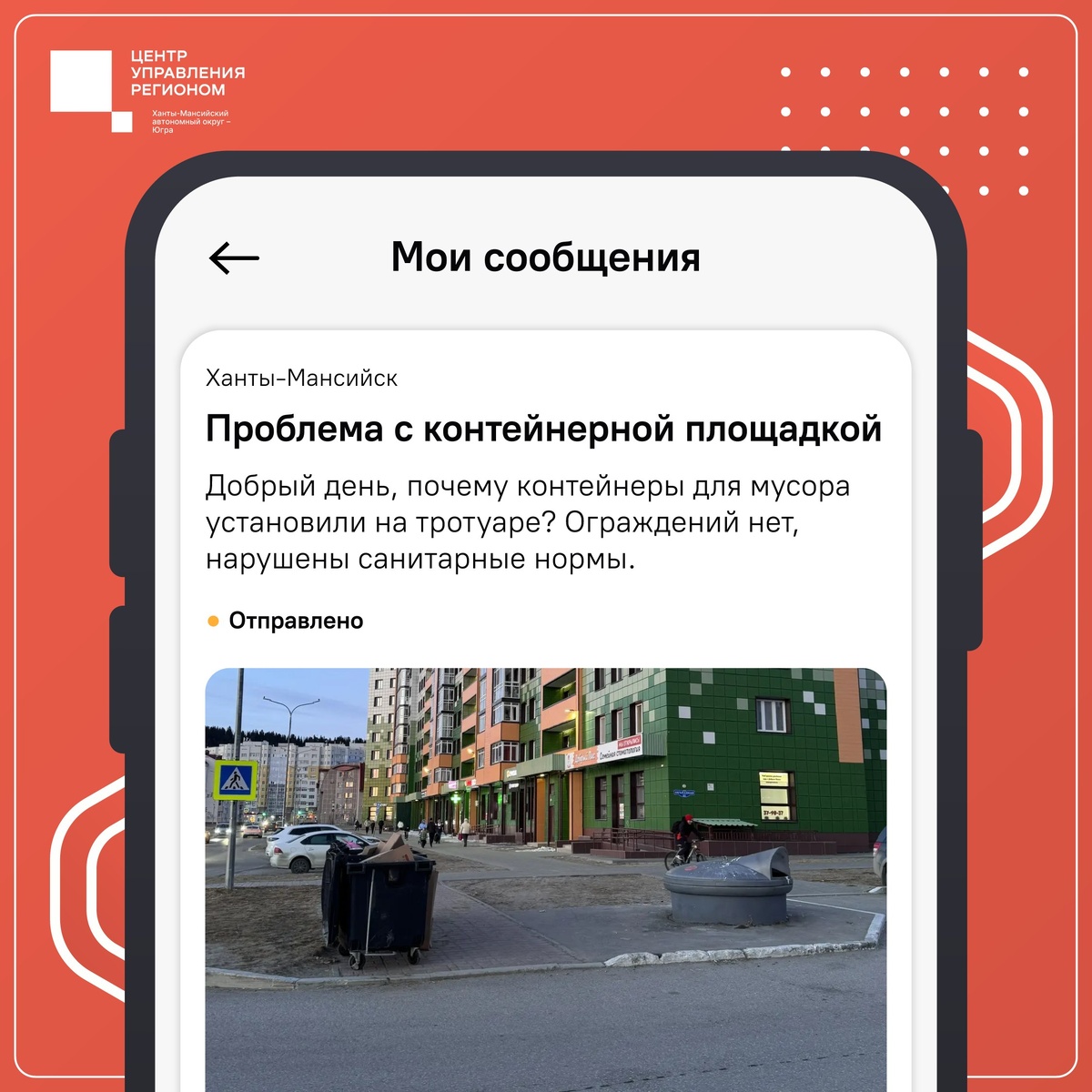 Югорчанка написала об этом в приложении «Госуслуги. Решаем вместе», и контейнеры убрали. Листайте карточки, чтобы увидеть, как это было.