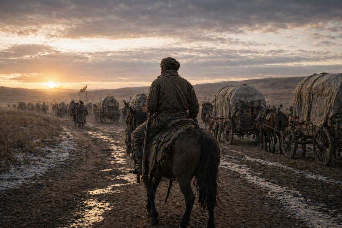 Есть города, где всё держится на зданиях, улицах, привычных формах. Иргиз XIX века — не про это. Здесь почти нет ощущения города в привычном смысле. Есть дорога, есть движение, есть люди, которые приходят и уходят. И в какой-то момент понимаешь: Иргиз — это не точка на карте, это состояние пути, в котором нельзя задержаться надолго. Сначала кажется, что здесь нечего «смотреть». Нет плотной застройки, нет центра, нет визуального якоря. Но проходит немного времени — и это ощущение ломается. Пространство начинает работать иначе. Появляется ритм караванов, шагов, остановок, разговоров. И становится ясно: Иргиз не про место, а про переход. Про момент между «уже не там» и «ещё не здесь». В Иргизе всё подчинено пути. Люди приходят сюда не для того, чтобы остаться, а чтобы двигаться дальше. Караваны делают остановку, переселенцы отдыхают, торговцы договариваются — и снова в путь. Город не удерживает, он пропускает. И именно это создаёт ощущение, что главное здесь — не здания, а направление. К
