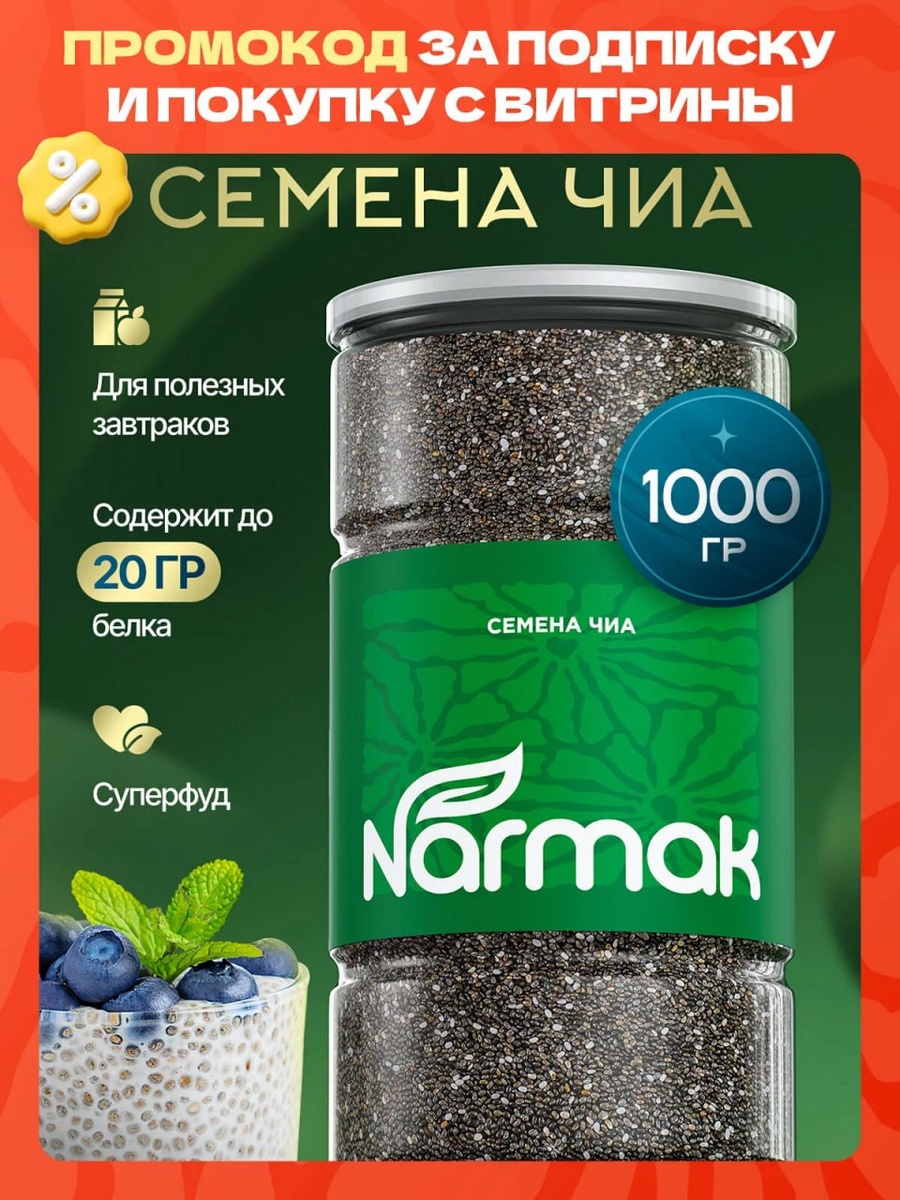 Семена чиа для похудения NARMAK 1000 гр. в банке, суперфуд.
