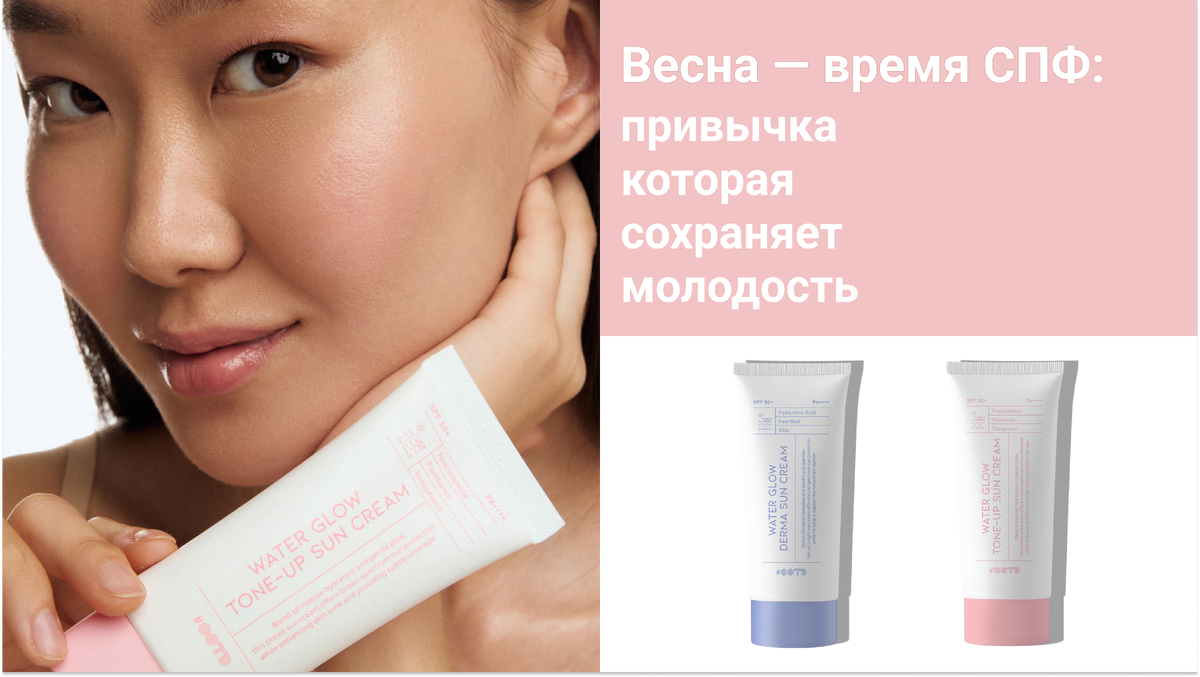 Современные СПФ-средства совсем не похожи на плотные кремы прошлого. Например, тонирующий солнцезащитный крем с эффектом сияния #OOTD Water Glow Tone-up Sun Cream работает за счёт физических фильтров, которые отражают UVA- и UVB-лучи. Лёгкая текстура быстро впитывается, не оставляет липкости и белого налёта.