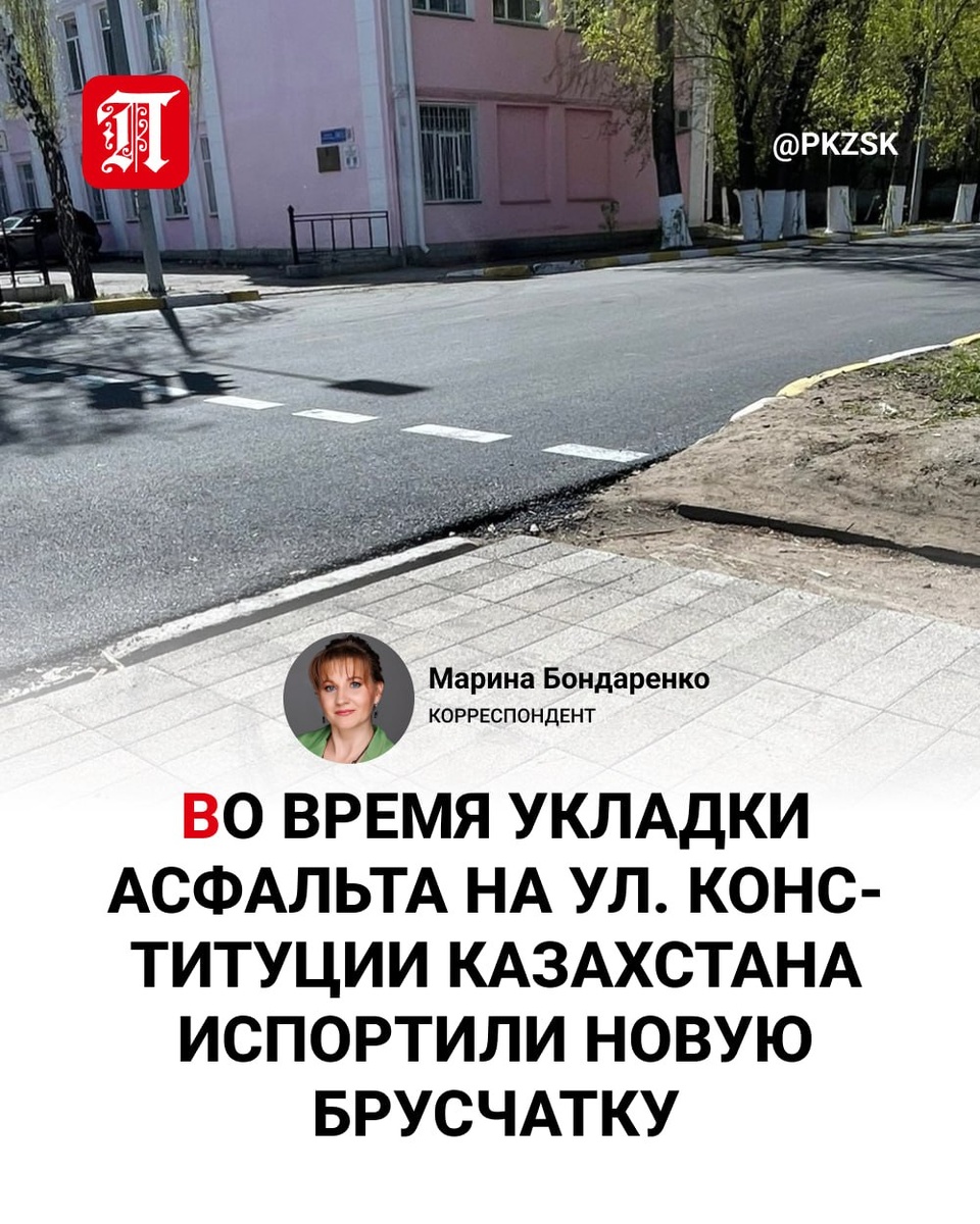 ❗️Во время укладки асфальта на улице Конституции Казахстана испортили новую брусчатку