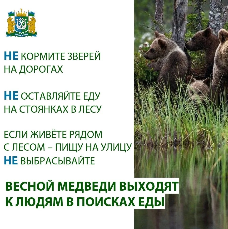 После зимней спячки хищники ищут пищу и могут появляться вблизи дорог и населенных пунктов. Помните: большинство встреч с медведями происходит там, где люди предоставляют животным доступный корм. Кормить животных ЗАПРЕЩЕНО❗ 1⃣ Во-первых, рацион медведей на 85 % состоит из ягод, грибов и другой растительной пищи, остальные 15 % составляют рыба и мелкие животные. «Человеческая» еда им не подходит. 2⃣ Во-вторых, прикорм у дорог и «столовые» с пищевыми отходами у населенных пунктов вызывают привыкание у животных. Это может привести к их гибели – либо из-за неподходящей пищи, либо из-за необходимости устранить зверя для безопасности людей. 🍃 Берегите себя и природу! Следите за нашими публикациями, в скором времени расскажем, что делать при встрече с медведем.