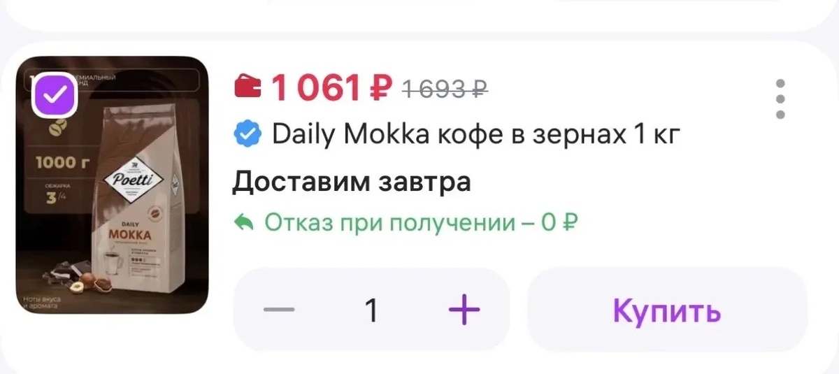 Poetti Daily Mokka кофе в зернах 1 кг