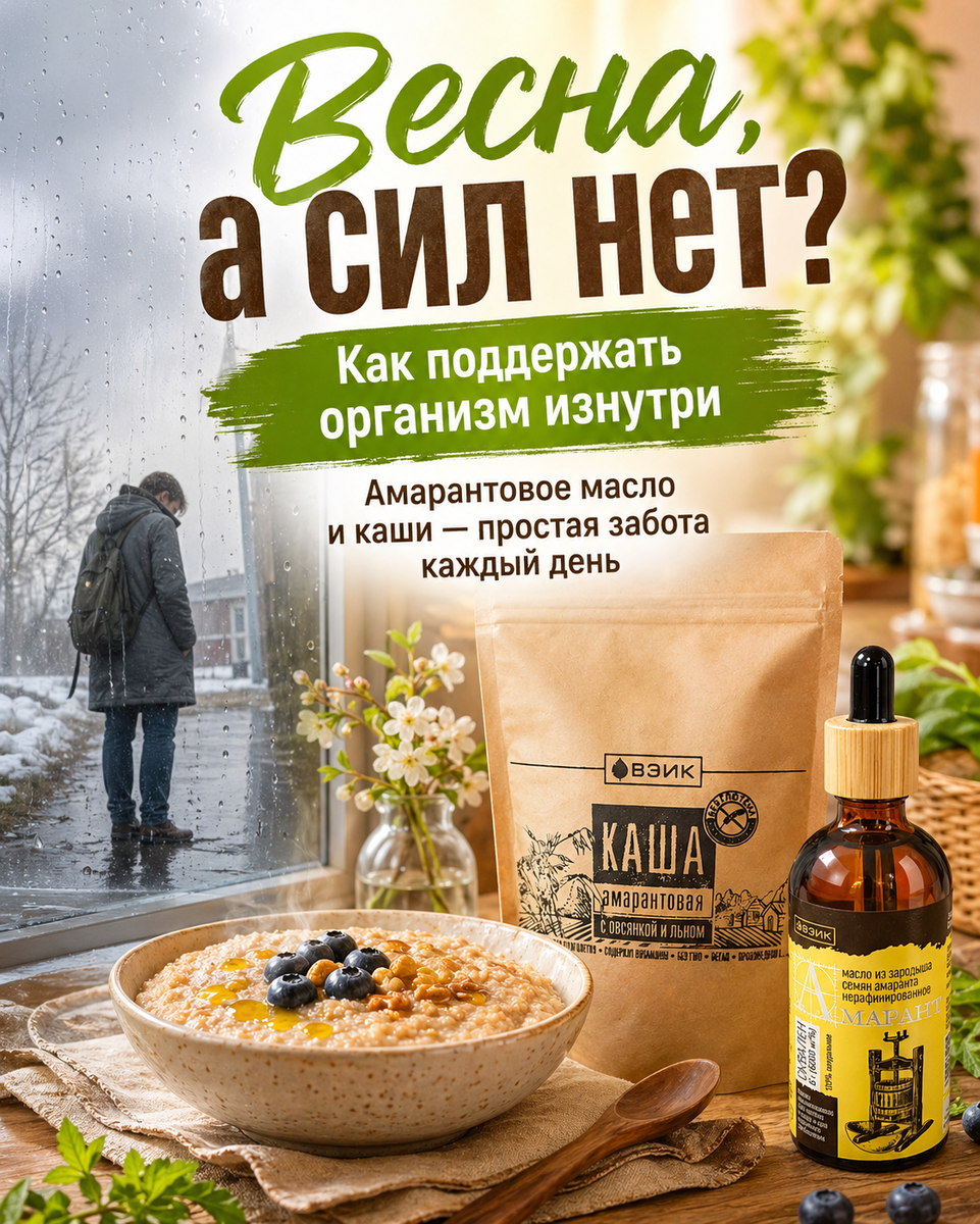 Мы в ВЭИК уверены: холодная весна не требует подвига. Она требует опоры. Чуть больше сна, чуть больше тёплой еды, чуть больше движения и несколько продуктов, которые помогают не усложнять жизнь. Именно поэтому амарантовое масло ВЭИК и амарантовые каши ВЭИК так уместны в этот период: они не обещают чудес, но помогают собрать вкусный, тёплый и более устойчивый режим для всей семьи.