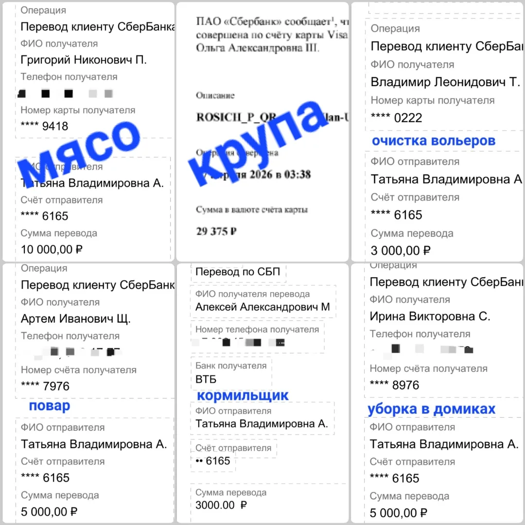 Нам критически важно сегодня купить ДРОВА, КРУПУ. Нам очень нужны мешки для уборки в вольерах (10.000руб за 1000шт плотных белых большого объёма). Мы тонем в нуждах(, мы не ставим перед собой грандиозные задачи, мы пытаемся решить только самые важные первоочередные!