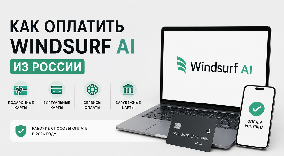 К 2026 году появились более простые решения. Сегодня подписку Windsurf AI можно оплатить дистанционно, используя подарочные коды, виртуальные карты или специальные сервисы оплаты.