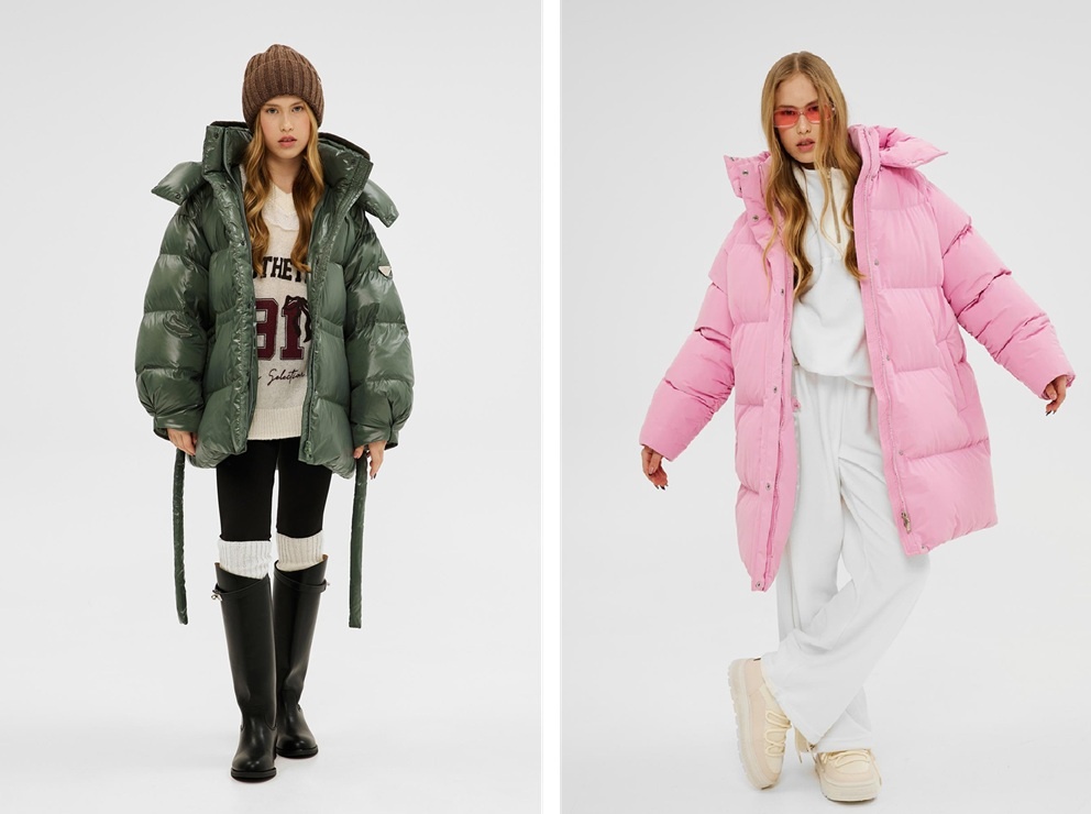Для стройной фигуры объёмное пальто или пуховик создаёт эффект контраста, подчёркивая хрупкость. В этом случае можно не бояться максимального объёма — он будет работать на образ.