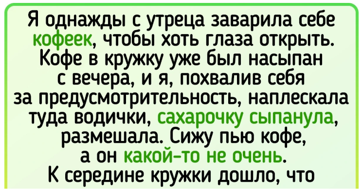 Однажды я шёл с телефоном в одной руке и стаканом молока в другой. Бросил что-то на кровать и пошёл выключить свет. Когда вернулся, обнаружил, что на кровати лежит стакан, а телефон так и остался в руке. Руководитель позвонил мне лично и попросил зайти к нему в кабинет. Я встал и вышел в коридор. До его двери было метров двадцать, она была прямо передо мной. Но я каким-то образом свернул не туда, заглянул в соседний отдел, поболтал с коллегами, вернулся к себе и спокойно продолжил работать. Потом начальник рассказывал, как был изумлён, увидев на записи с камер, что я на полпути просто развернулся и ушёл. © ildarmakaev Однажды в жаркий день мы с сестрой купили мороженое в мягкой оболочке, по форме напоминающей колбасу. И благополучно забыли его на столе на солнцепёке. Через три часа вспомнили. Сестра дотронулась до упаковки — и та взорвалась! Мороженым было покрыто всё вокруг: вся кухня и мы обе. © Мама Дорогая / AdMe Как-то решил приготовить яичницу. Планировал: разбить яйца на сковоро