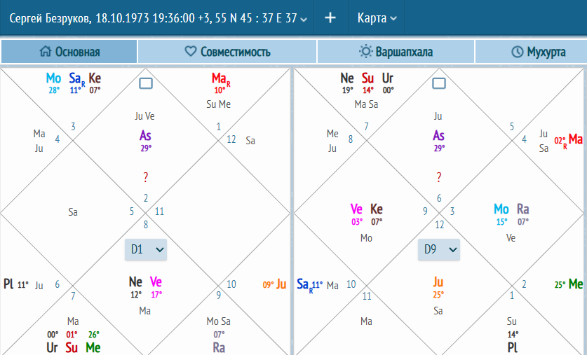 Кармическая нагрузка Сергея Витальевича (то, с чем пришел из прошлой жизни) - нежелание идти на компромисс, следование только своей правоте и идеологии, сложность в построении семейных отношений из-за "Я так сказал!!". Пройден путь словесного насилия. Собственно именно это поведение было ярко продемонстрировано в молодые годы Сергея в сериале "Бригада". «Я таков, каков я есть. И чем скорее ты это поймёшь, тем лучше для нас обоих. Всё, базар окончен!» (с) Бригада Давление в разговоре с позиции авторитета👨⚖, с которым нельзя пререкаться - это то, за что платят Сергею. Этот финансовый код мы видим в его натальной карте как: ✏Сатурн в Близнецах во 2м доме - в секстиле к Марсу в Овне. Сергей готов драться за свой авторитет и идеологию: Марс квадрат Юпитер Марс квиконс Плутон Марс квиконс Нептун Марс секстиль Сатурн Марс оппозиция Уран. Сместить его с высоких социальных ролей практически невозможно. Марс самая напряженная планета в карте Сергея. Напряжение в карте дает высокие социальные р