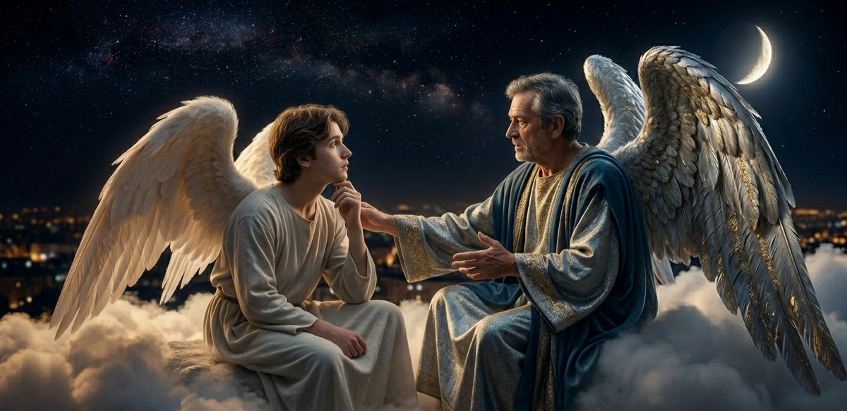 Старший ангел посмотрел на юного — взглядом, в котором было и сострадание, и мудрость, и печаль.