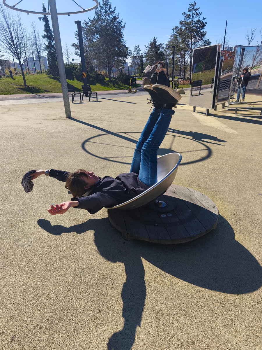 И мзыкальные "классики" - ножками можно понаступать, а там звуки всякие красивые. И походить по резиновым дорожкам, по каким-то ещё приблудам, покрутиться...