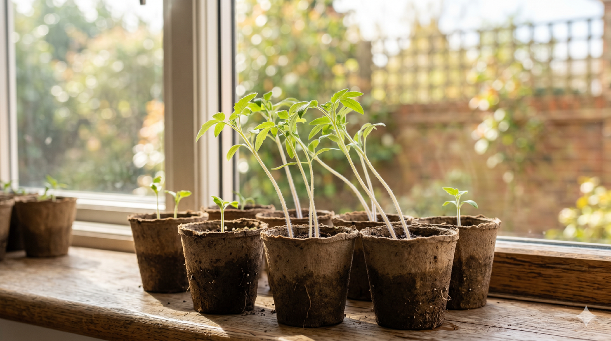 Каждую весну одна и та же картина: посеял томаты в феврале, поставил на подоконник, а через три недели смотришь — стебли тонкие, бледные, тянутся вверх как попало. Рассада томатов вытянулась — и непонятно, что с этим делать. Выбросить жалко, а высаживать такую в грунт страшновато. Сейчас разберёмся, почему это происходит и что можно реально сделать, не теряя времени. Самая частая причина — нехватка света. Томаты в принципе очень светолюбивы, им нужно не менее 14–16 часов освещения в сутки, особенно в первые недели после всходов. А что у нас в феврале-марте на подоконнике? Три-четыре часа скудного пасмурного солнца, если повезёт. Растение это чувствует и начинает тянуться вверх — ищет свет. Стебель вытягивается, междоузлия становятся длинными, листья мелкими и светло-зелёными. Всё это сигнал: рассаде томатов не хватает освещения, и она делает всё возможное, чтобы выжить. Именно в этот момент многие огородники начинают паниковать, хотя решение есть и оно простое. Второй виновник — тепло