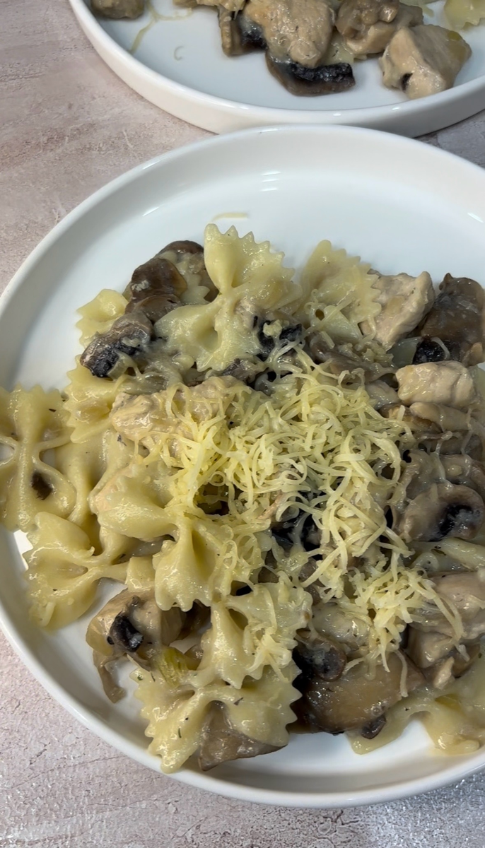 Вы едите полноценную, горячую пасту в густом соусе. Большое количество белка из курицы и клетчатки из грибов посылает мозгу сигнал о полном насыщении. А макароны дают психологический комфорт — вы не чувствуете себя обделенным.
